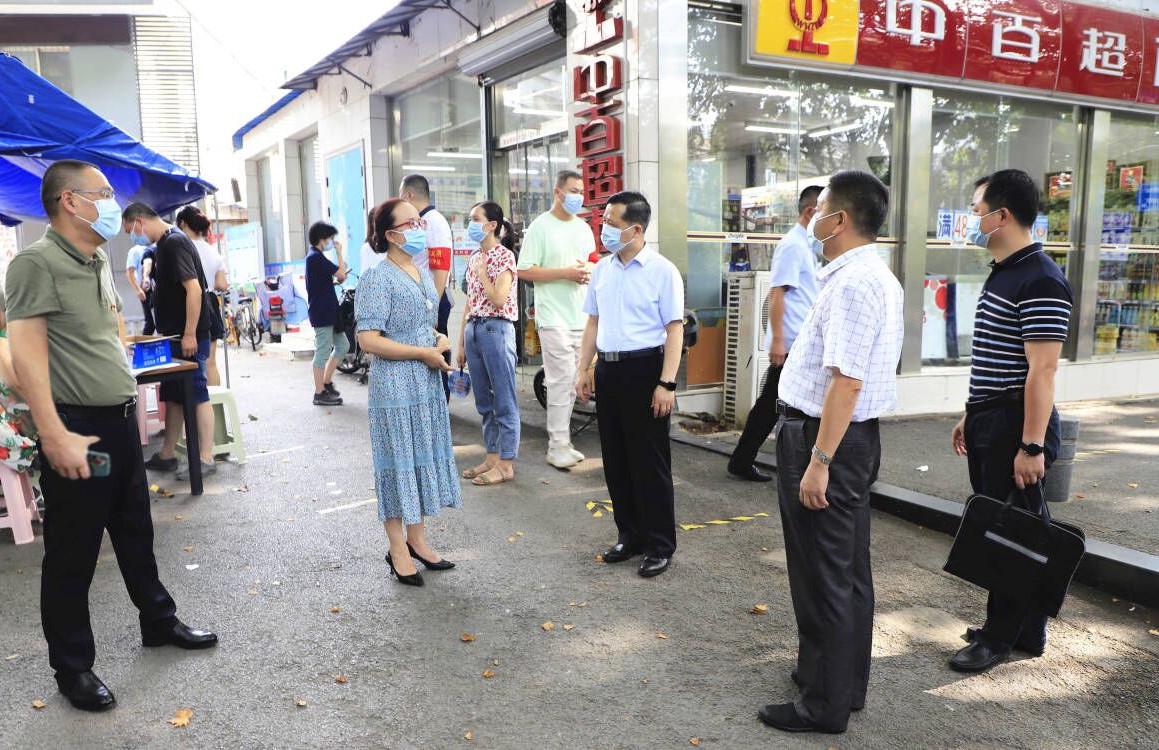 在社区核酸检测点,管俊现场查看核酸采集情况,向社区主要负责人了解下沉社区党员配合维护现场秩序、开展驻点值守等情况,了解社区现实困难和工作需求。他要求下沉党员干部坚决服从社区党组织的安排,要与社区党委、居民群众一起,坚定信心、争分夺秒、并肩战斗,以强烈责任感和紧迫感协助做好当前疫情防控工作。要积极配合社区把党员、群众、各类组织更加高效组织动员起来,切实筑牢联防联控、群防群治的严密防线。要积极宣传和引导群众做好个人防护,不扎堆、不聚集、不串门、不造谣、不传谣。要大力协助社区开展人员筛查、体温监测、核酸检测、物资配送、环境消杀等工作,为全力守护人民群众健康安全作出积极贡献。最后,管俊向战斗在核酸采集一线的医务人员、社区工作者和局下沉党员干部表示亲切慰问,并送去防暑降温慰问物资。